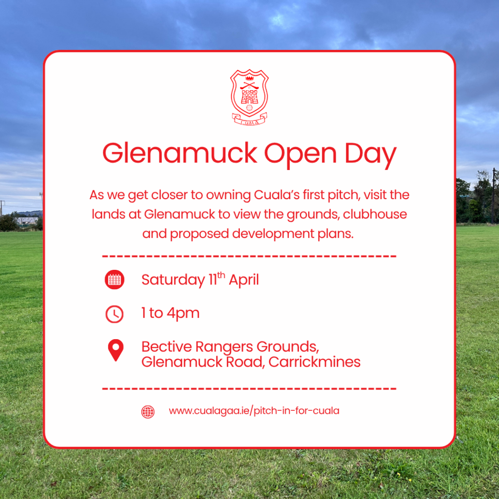 As we get closer to owning Cuala’s first-ever pitch, join us on the lands in Glenamuck to view the grounds,…