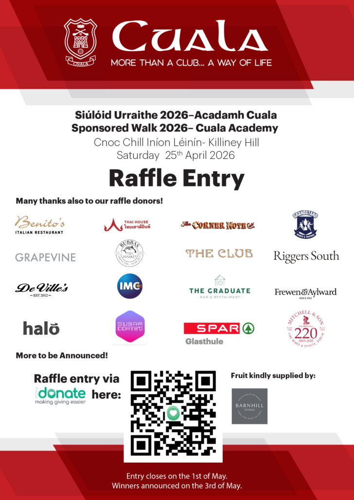The Annual Cuala Academy Sponsored Walk up Killiney Hill will take place on Saturday 15th April. This is always an…