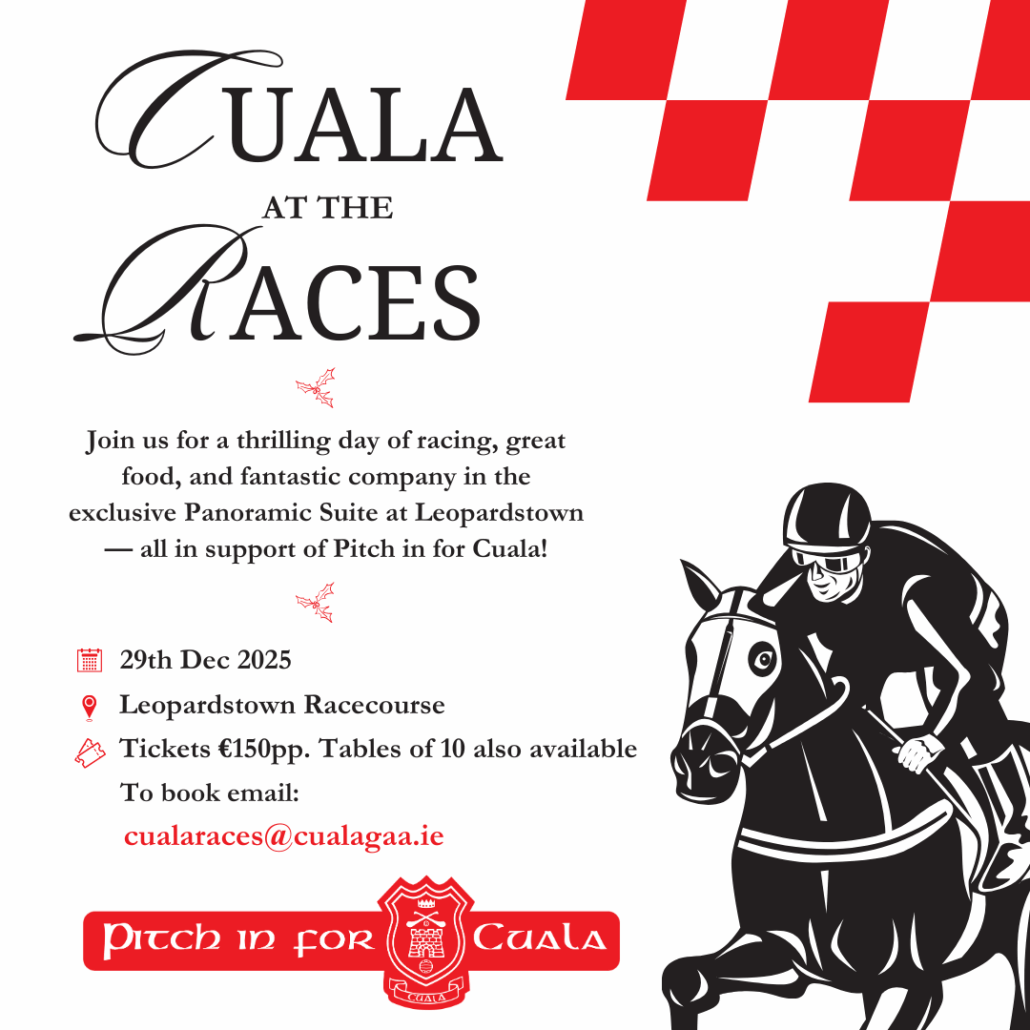 Cuala’s Annual General Meeting will be held on Friday 28th November, at 7pm in Johnstown Girls National School. Members will receive the…